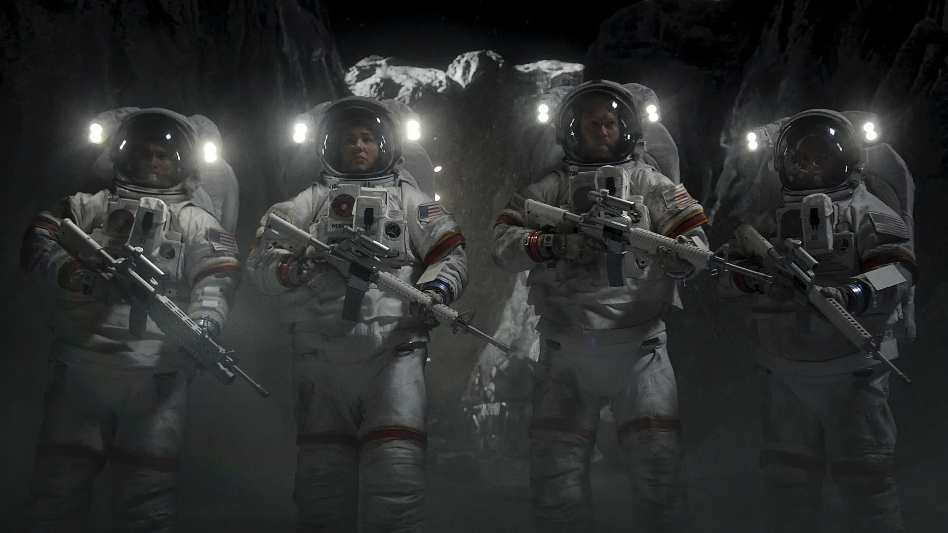 Tracy and the Moon Marines get ready to retake the claim and fly on the LSAM. They approach it while humming Wagner's "Ride of the Valkyries". Tracy says the landing site was not clear, but she found one after a time. Tracy lands the LSAM and the astronauts get into the claim with their guns in hand, which make the Soviet cosmonauts leave. Bradford celebrated while Margo remained expressionless.